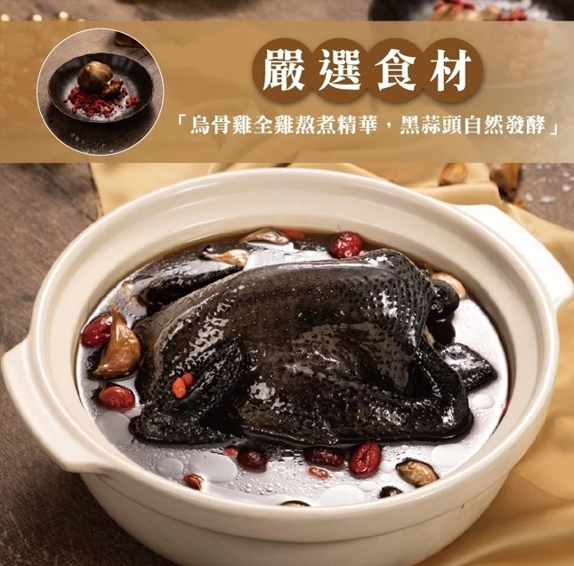 尚珍食品有限公司推出《黑蒜頭烏骨雞湯》,嚴選烏骨全雞搭配90...